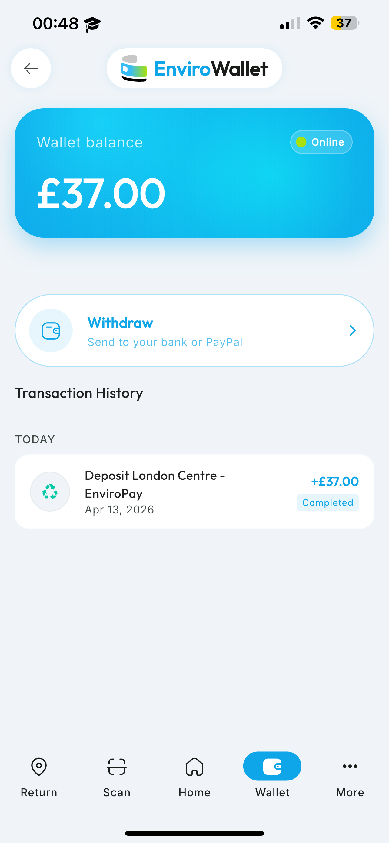 The UK's digital deposit-return platform. Scan any container, return it nearby, and get paid instantly to your EnviroWallet.